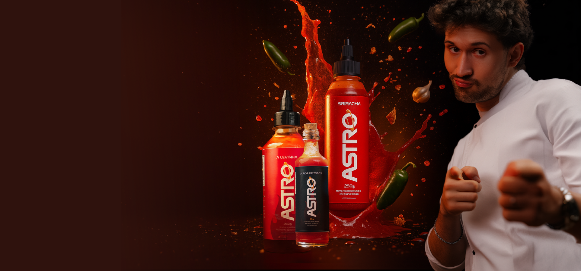 O nome "Astro" foi escolhido para transmitir a ideia de que nossos molhos são de outro planeta. A marca foi criada pelo Cheff Otto, e quer trazer uma experiência fora do comum com seus molhos para qualquer tipo de comida.